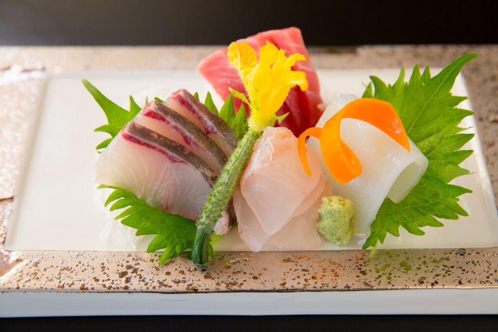 近海の海で獲れた新鮮なお刺身