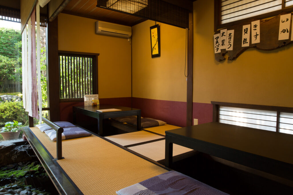 小上がりのお座敷で足をおろしながら