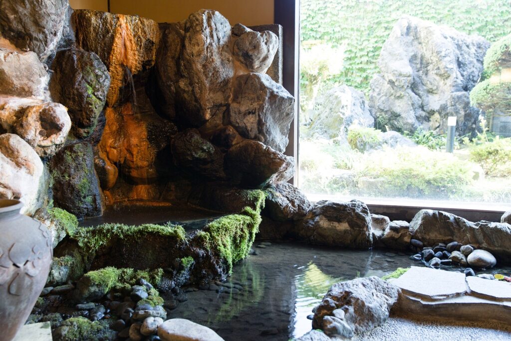 ゆっくりと滝の流れる店内で
